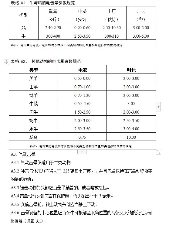 A1.5击晕不得杀死动物或者给动物造成永久的物理损伤。